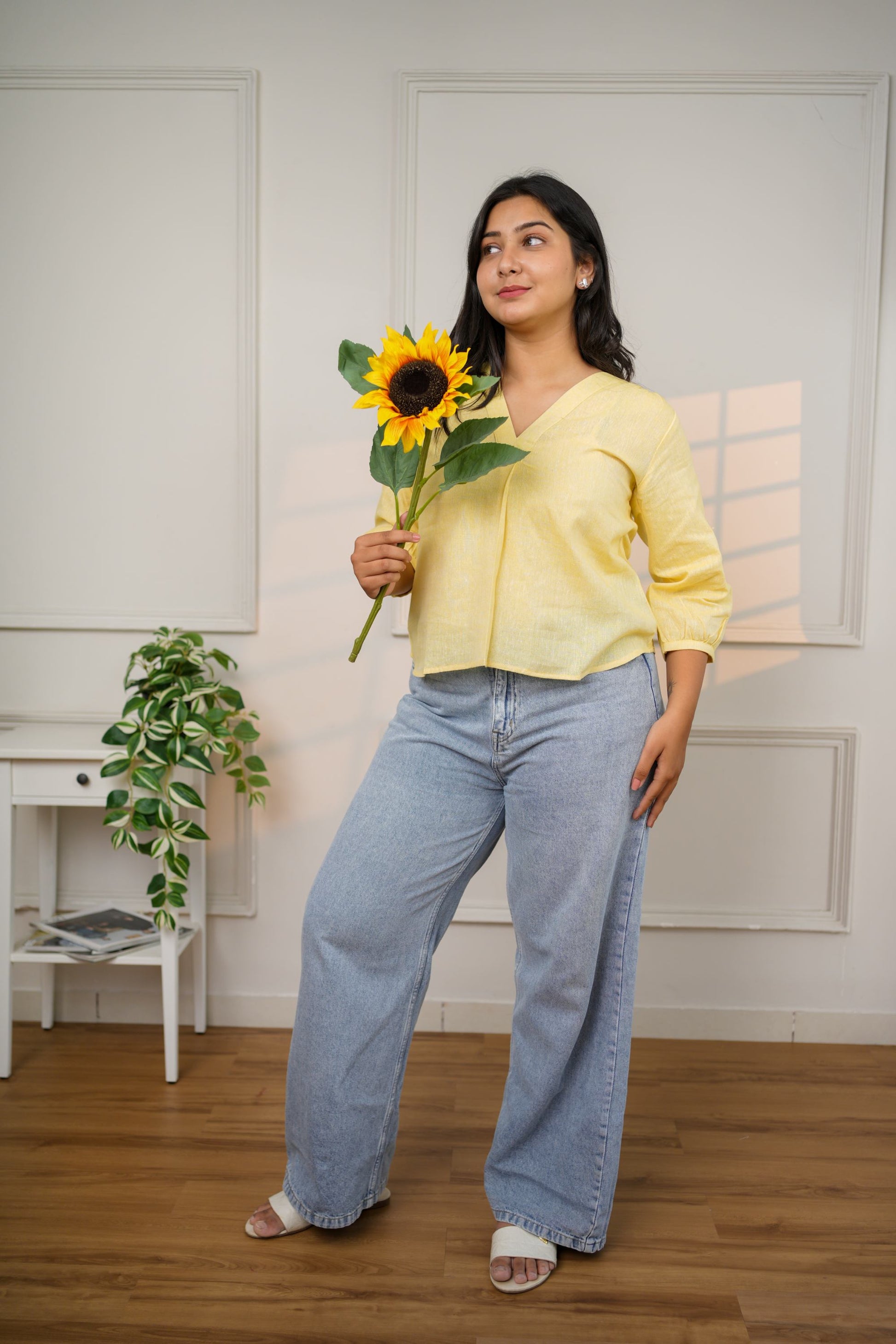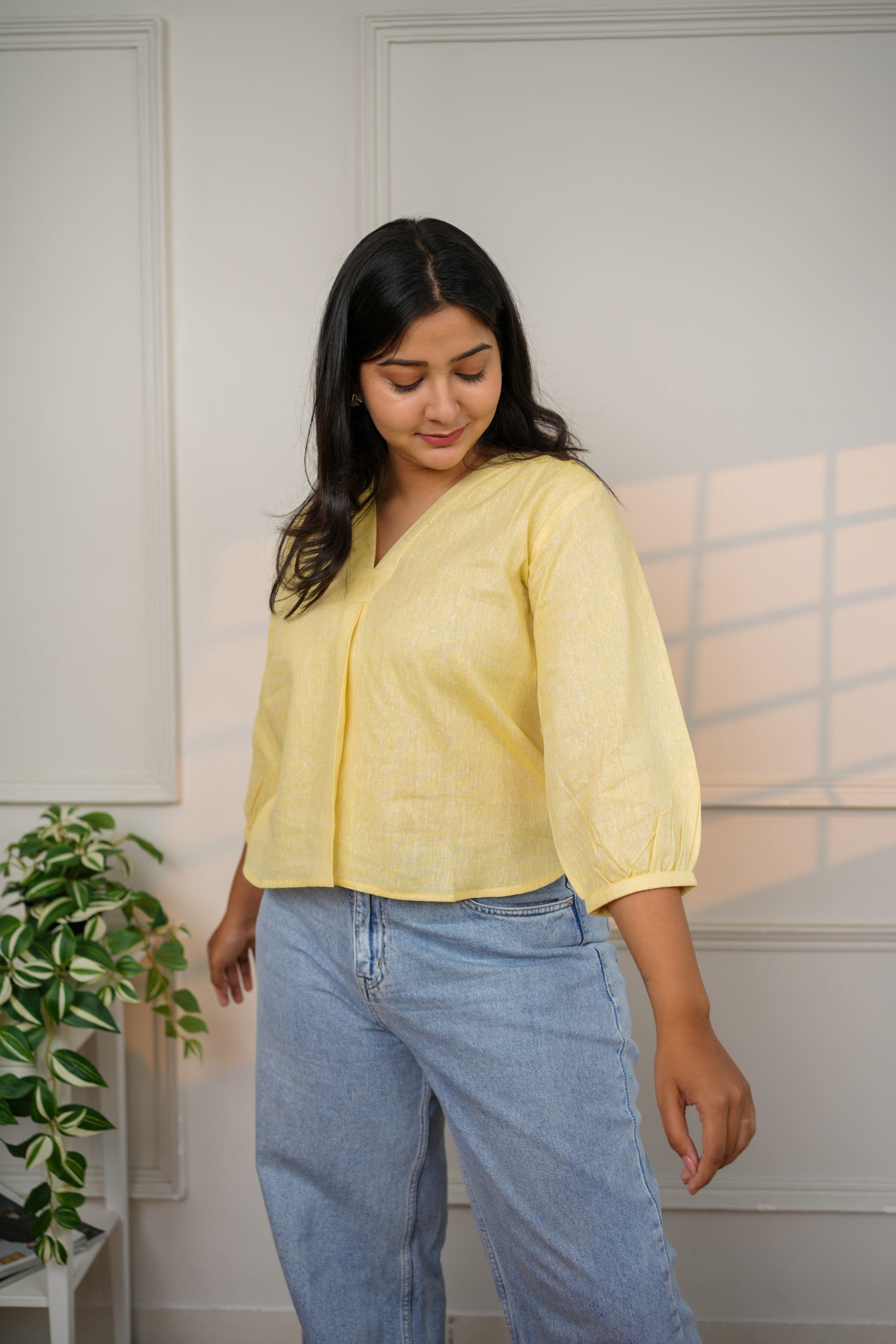 This Classic Lemon Yellow Top is made for you for a classic look with V-neck and minimal trendy pattern in front for a comfort fit.